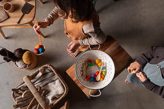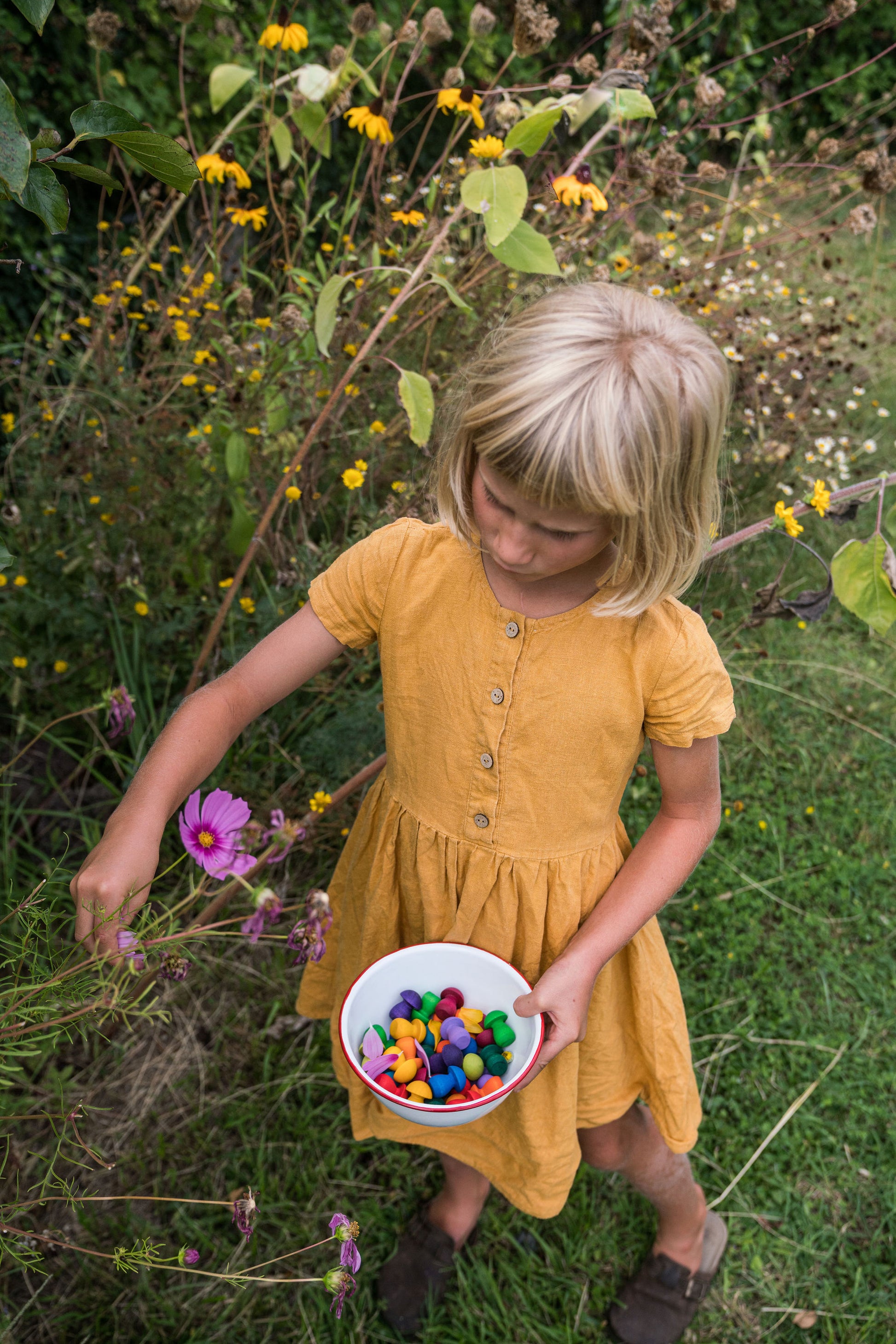 It is also ideal for loose parts play and children love to explore patterns and make circular mandala-style art. They can also be used in small worlds and imaginative play. Handmade from sustainable wood and stained with non-toxic colours.