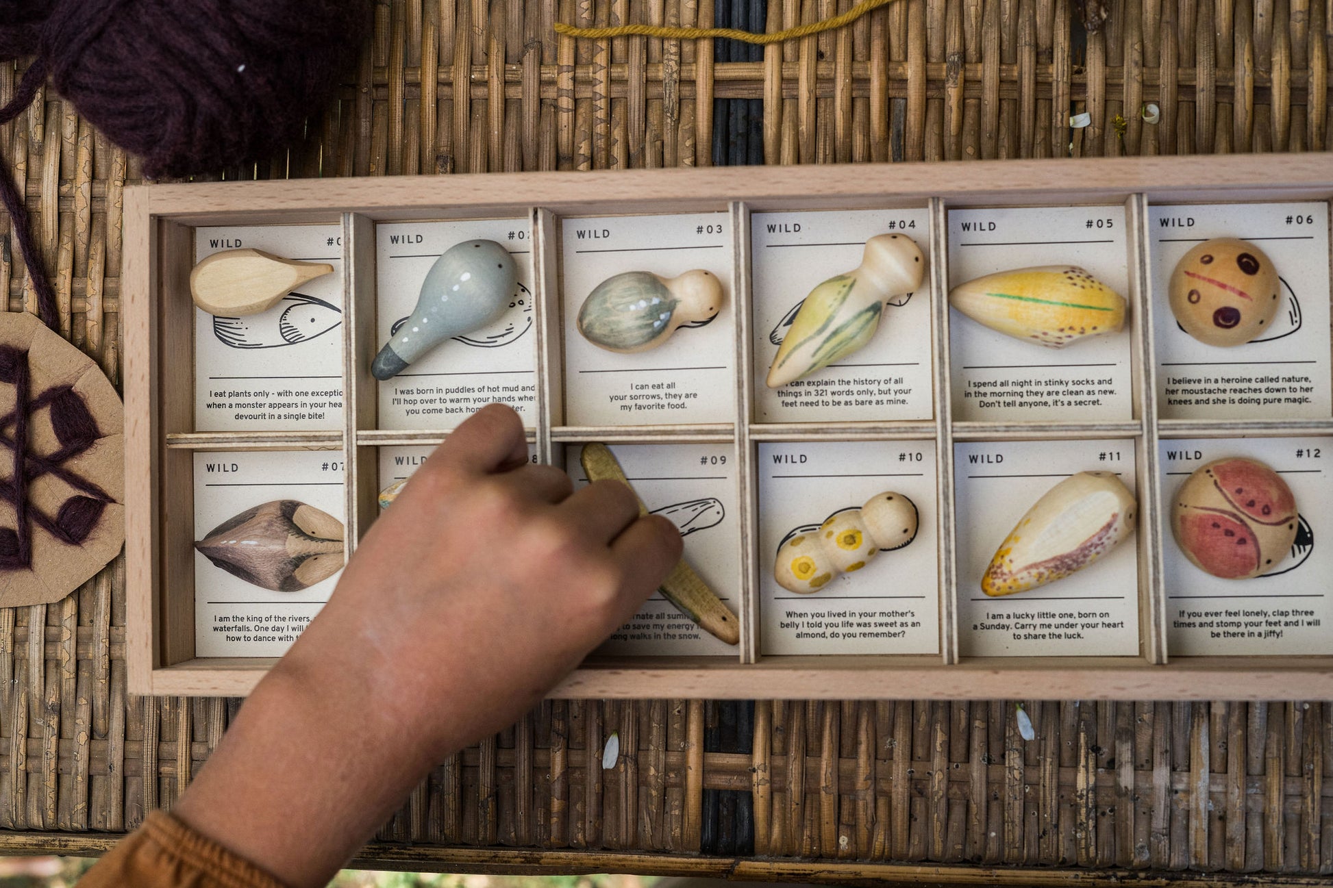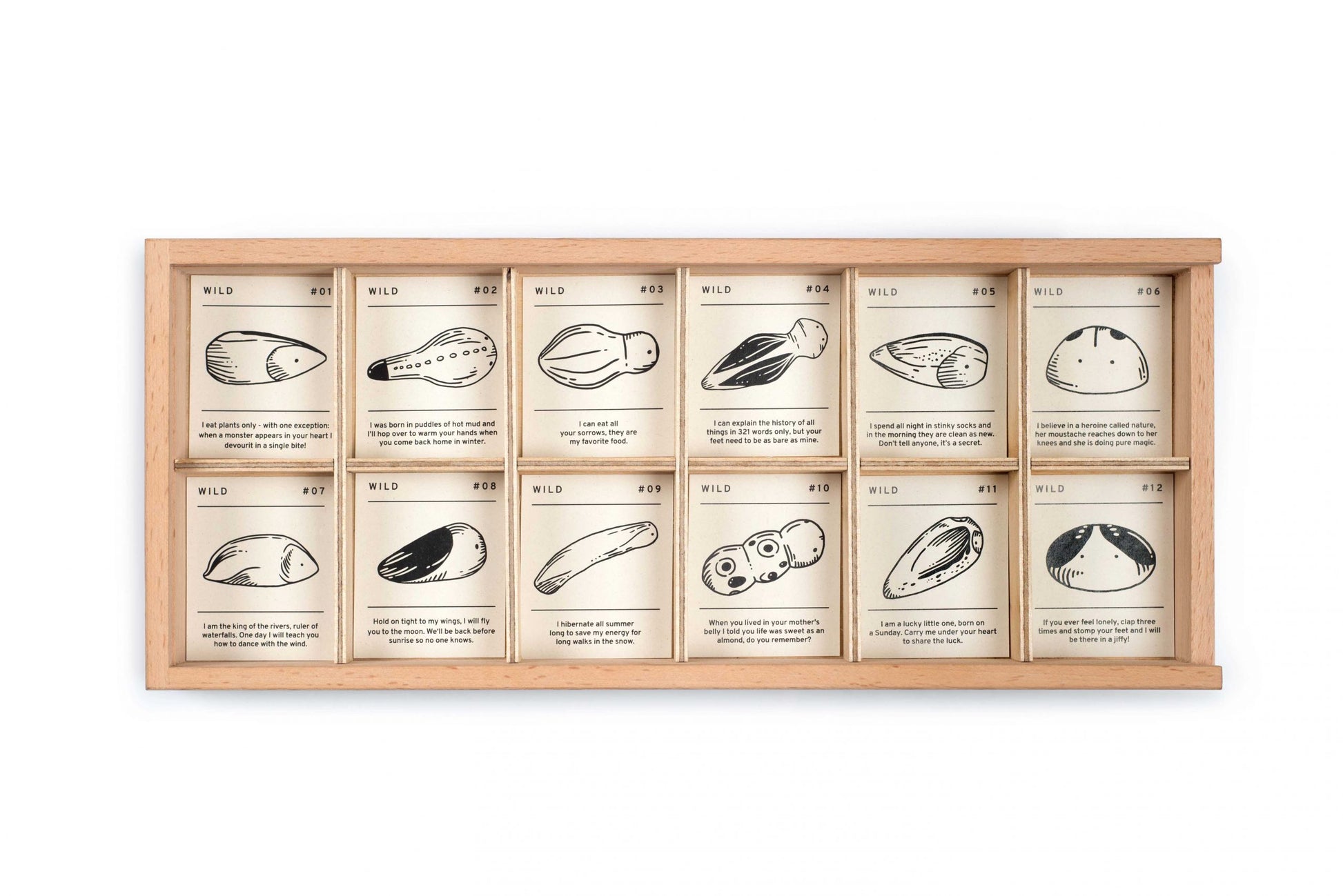 Grapat Wild is a collection of 12 creatures from the fauna realm. On the edge between fantasy and reality, each has their own superpower and story written on their card as an invitation to play. The sorting tray is included for storage and collecting, but can become a perfect complement to any open-ended play activity.