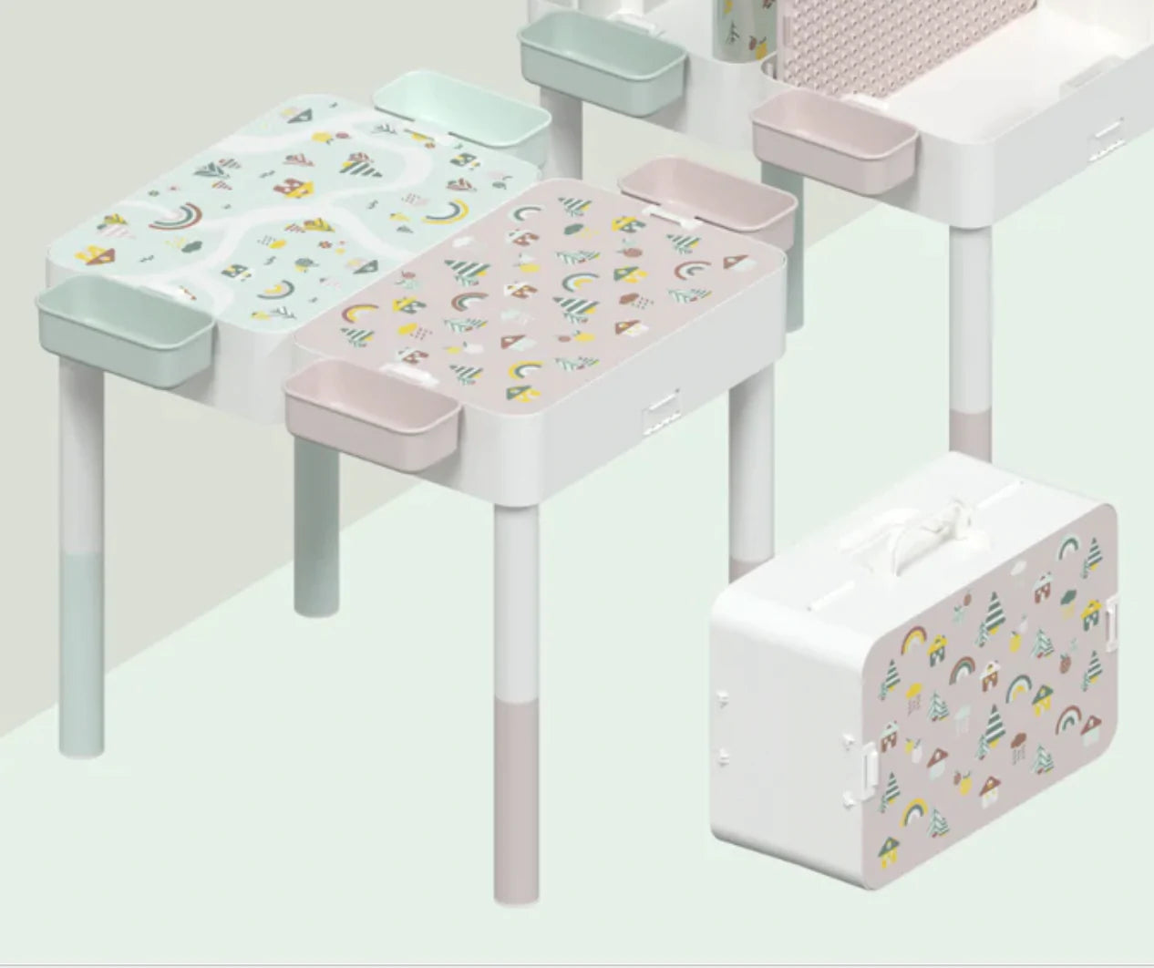 I love this design how it can encourage various creative play especially MESSY play - with sand, water, rice, etc. It has a surface for drawing at the same time can turn it another side to play with Duplo/Lego. Like it most is it is portable, we have been bringing it for our travels