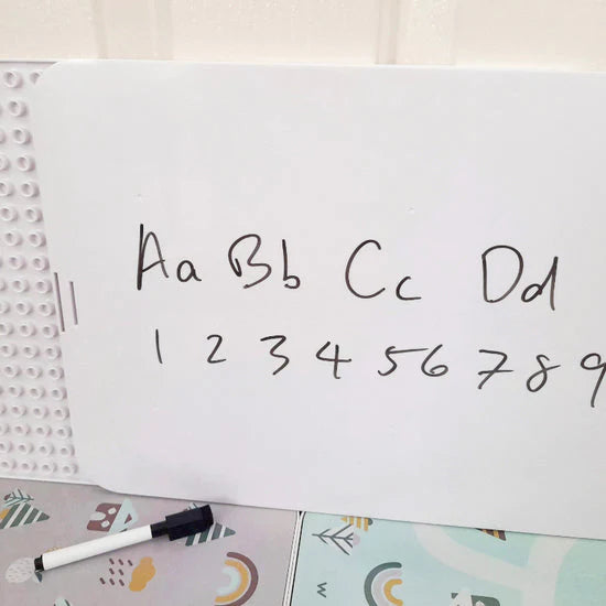 The LEGO pegs that show through form a grid great for early learning of geometry, repeat patterns, writing and more!