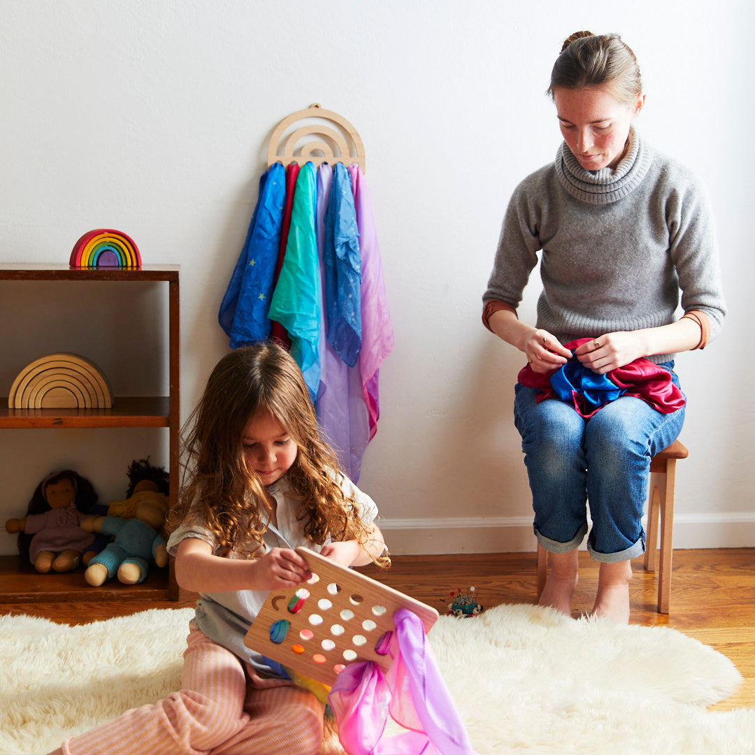 This Sarah's Silks Playsilk Weaving Board is a wonderful reusable craft project for children ages 3 to 7. Softly sanded holes can be woven with Playsilks in multiple ways to create beautiful designs.